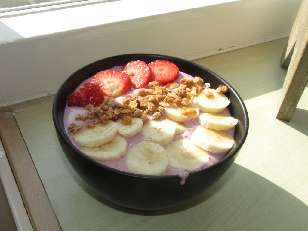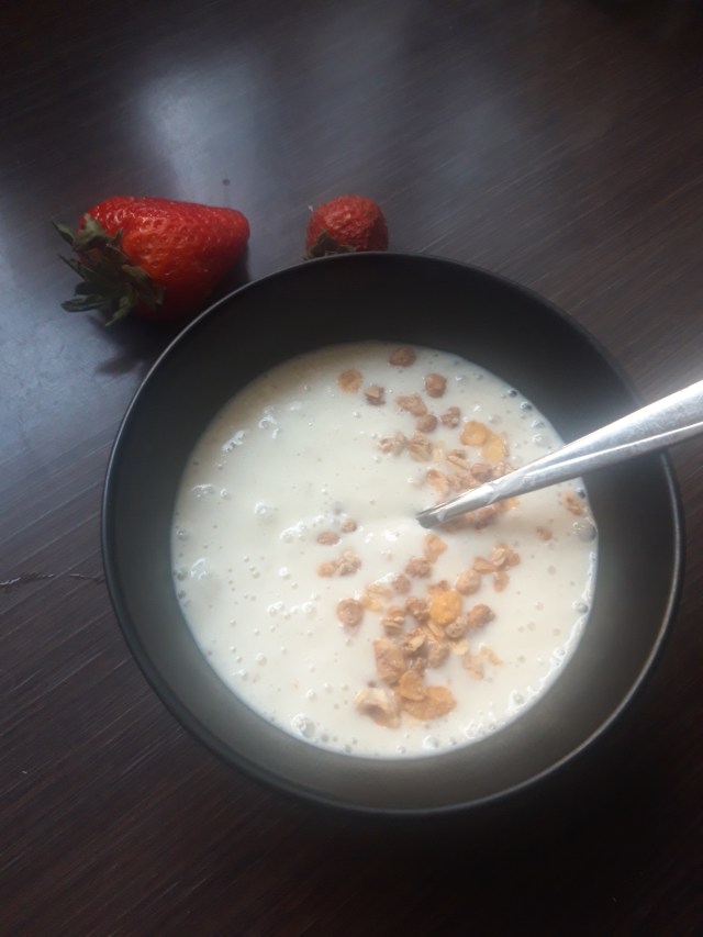 Nu we toch tijd zat hebben. Kunnen we lekker verschillende dingen maken en ook dit mega lekker ontbijt dit is een smootiebowl met banaan en wat bolletje ontbijtgranen en aarbeien echt mega lekker. Dit is ook echt een lekker voedzaam ontbijt wat ik ook heel belangrijk vindt de laaste tijd.. deze smootie is ook heerlijk naar een lekker hardlooprun goed voor je herstel.