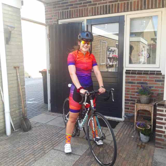 Tip: begin als je een racefiets heb gekocht met naar spullen kijken ik heb me pakje op alieexpress gekocht omdat ik dacht straks vindt ik het niks en heb ik een duur pakje. mijn helm komt van decatlon en de schoenen ook. en de sokken dacht ik ook de fiets heb ik van een vriendin die wilde een nieuwe en ik had er al op gefiets die 40 kilometer en de 2de keer 65 kilometer gefiets dus ik wist wel een beetje hoe de fiets fietste. dus en sinds denk een jaar vindt ik het echt leuk moet het wel vaker gaan doen en mensen kijken me echt aan kijk een meid op een racefiets vindt dat echt cool en dan lekker scheuren. je fietst zo 27/28 kilometer per uur. en een keer wat anders als je geen zin hebt om te hardlopen.